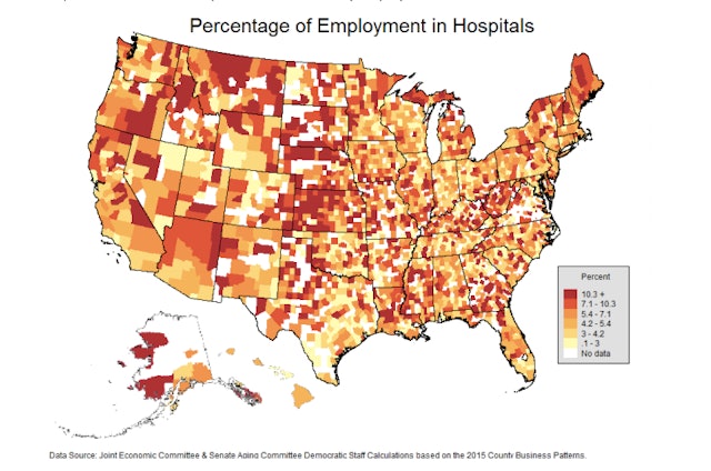 In short, the report, called "TrumpCare Threatens Rural Hospitals," claims that President Trump and the GOP's American Health Care Act (AHCA) would likely threaten rural hospitals, local economies, and the older Americans citizens. "TrumpCare, which will cut $834 billion over 10 years from Medicaid and undermine the private health insurance market in rural areas by cutting premium assistance, will hurt rural hospitals, [which] will face even more difficulty recruiting and retaining health care providers; maintaining hospital day-to-day operations; and supporting their communities’ health needs," the report states. "Rural hospitals are also economic engines in smaller communities, and when they are at-risk so too are the jobs and economic growth they provide in rural areas."
