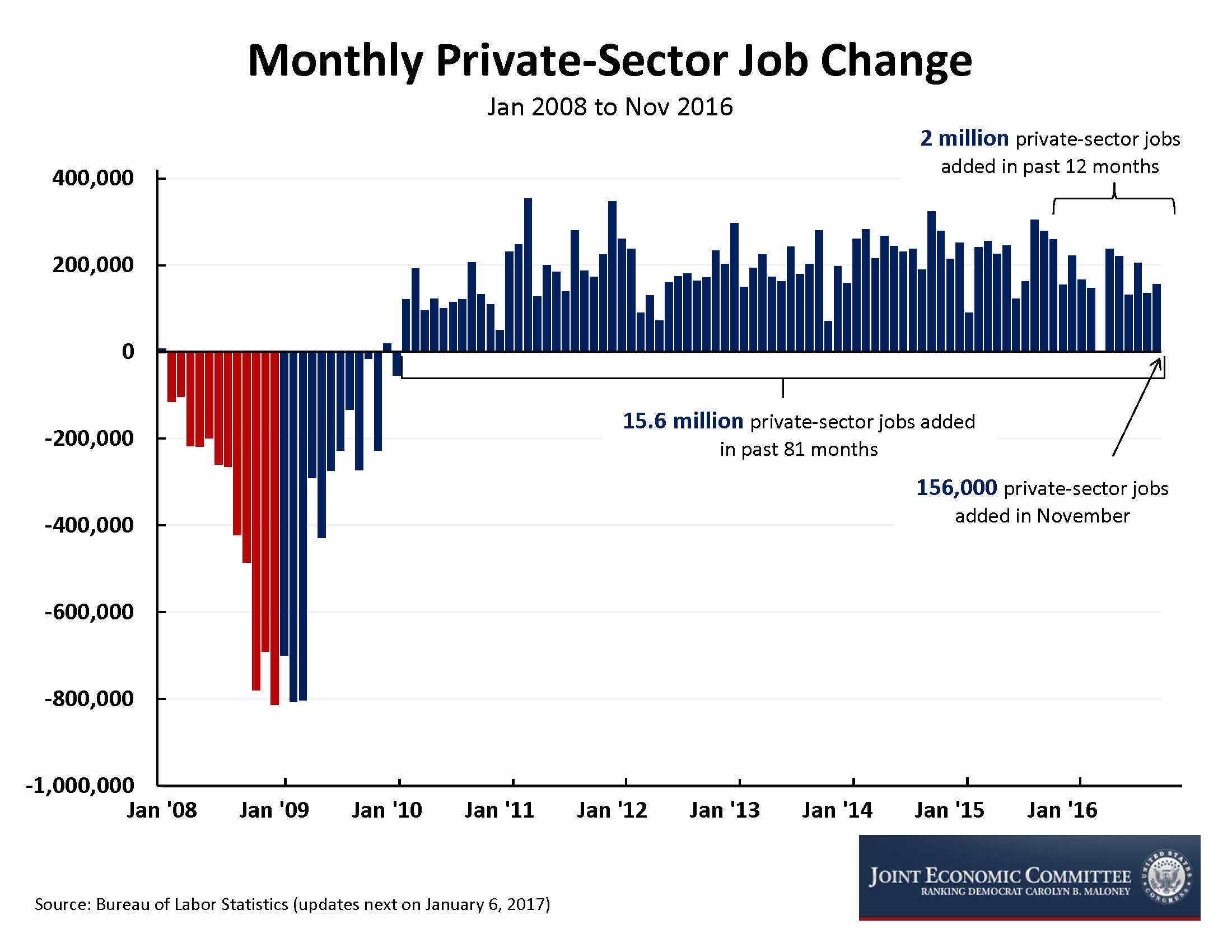 “It’s easy to forget how far we’ve come,” said JEC Ranking Member Carolyn Maloney (D-NY). “The economy President Obama is handing off to President-elect Trump is far, far better than the economy he inherited from President Bush. The numbers speak for themselves. But as the recent election reminds us, we need to do more to make sure that the benefits of the recovery reach everyone.”