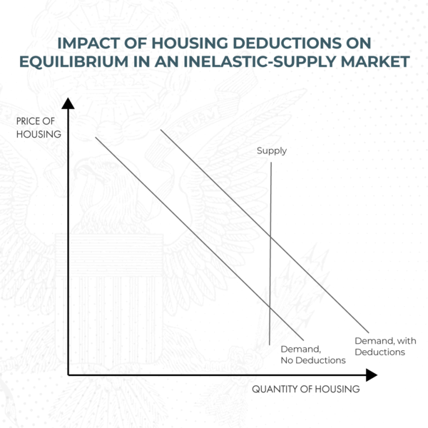 In such a market, tax deductions increase the willingness to pay, just as they did before, but the benefit becomes embedded entirely in the price of the home, and no new construction happens. In this case, the economic incidence of the deduction is entirely on the incumbent homeowner. The homeowner can, of course, sell the home—and the right to the associated tax deductions—to another person, but he or she will be able to charge extra for that privilege.